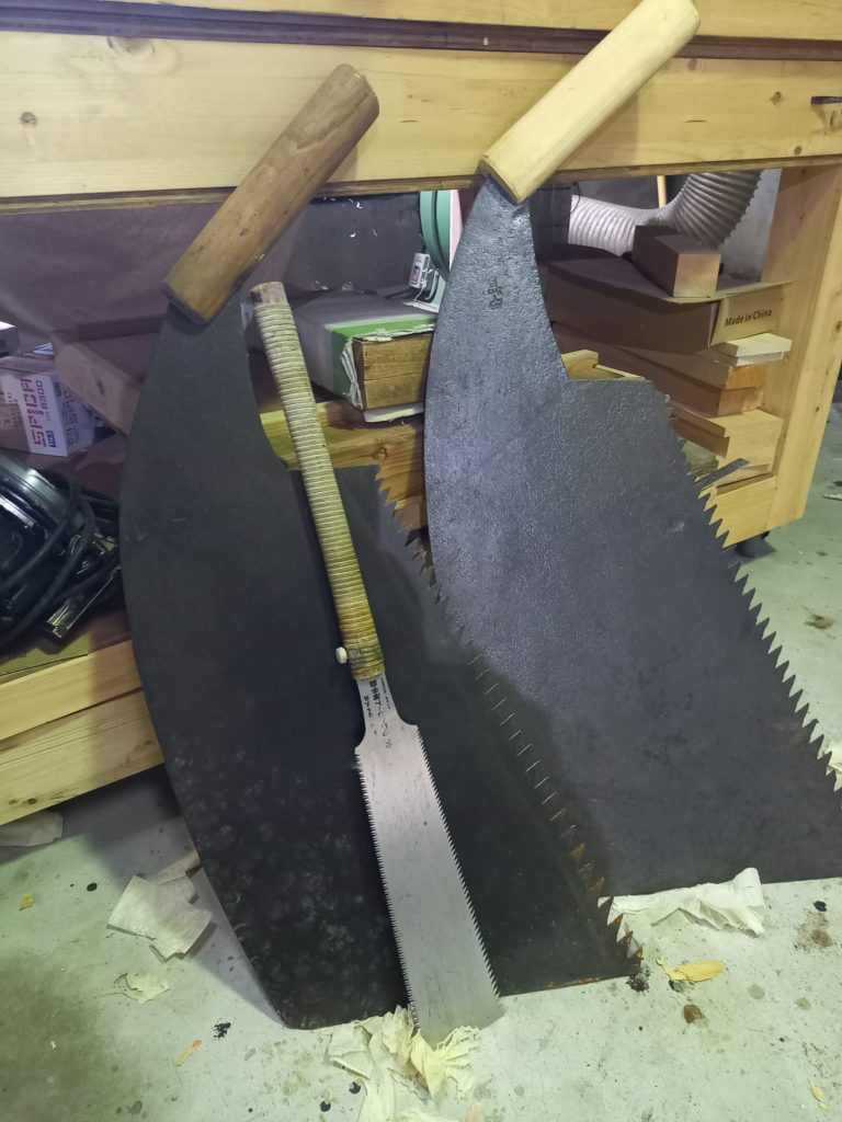 大鋸(おが)昔のノコギリです。 普段 使いの鋸より かなり大きいです。