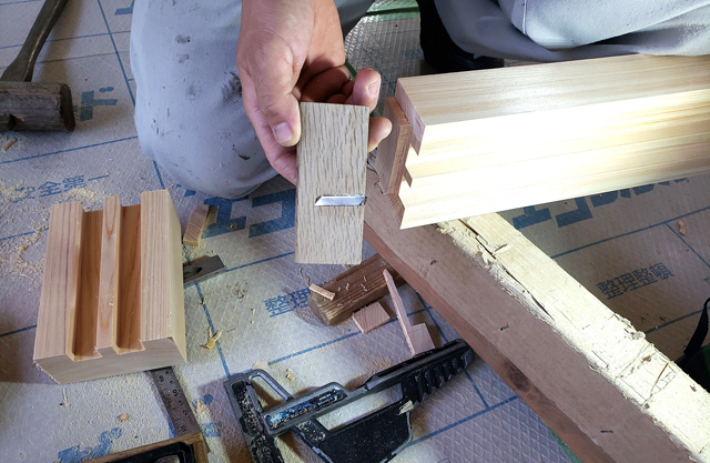 木の個性をすべて生かす一級技能士の作業です。