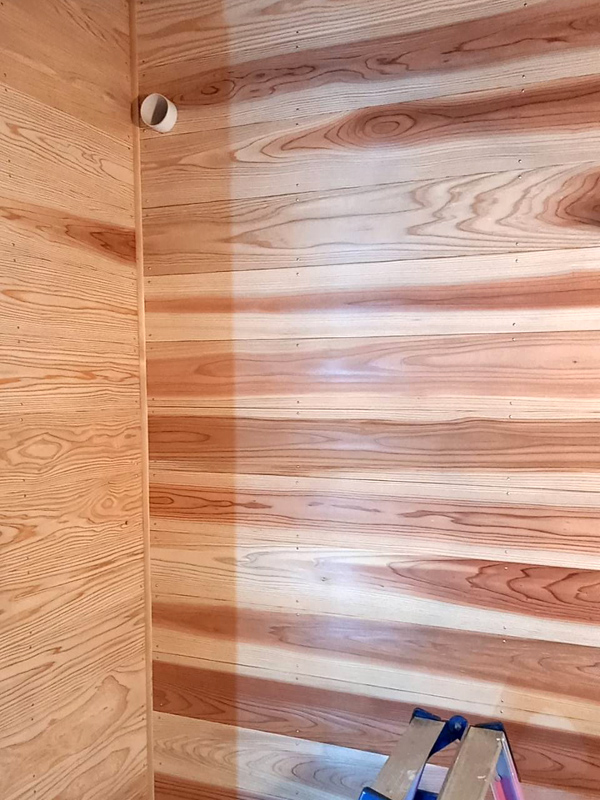 内装一例・クローク壁 杉板張り